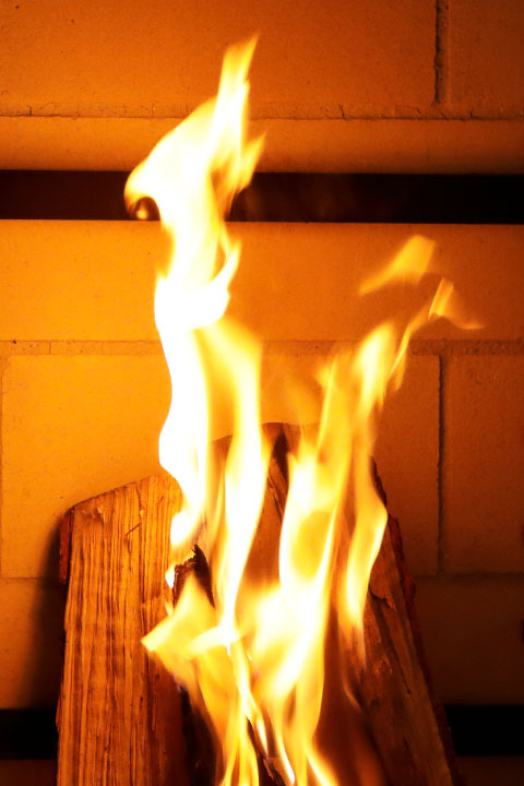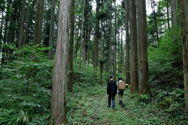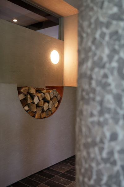 薪は、地域で自生するミズナラなどの伐採木を自分たちで割って使っています。
