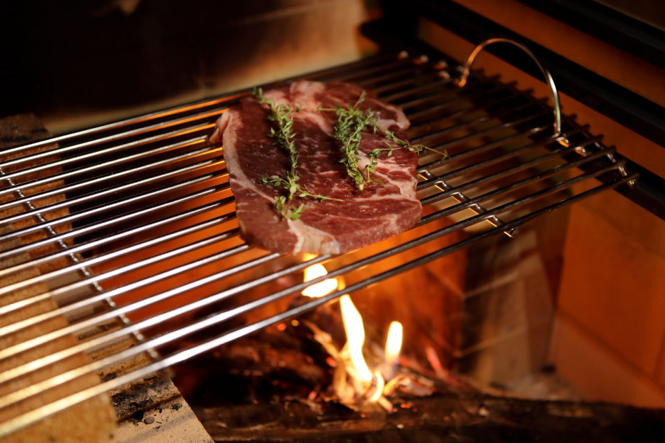 店内に設置したハース(Hearth/炉)で生まれる薪火料理がオステリア aoの主役。直火で香ばしく焼く、炙る、炭状になった熾火(おきび)でじっくり火入れする、煙で燻すなど、薪火ならではの自由度の高い加熱法で、食材のうまみを最大限に引き出します。